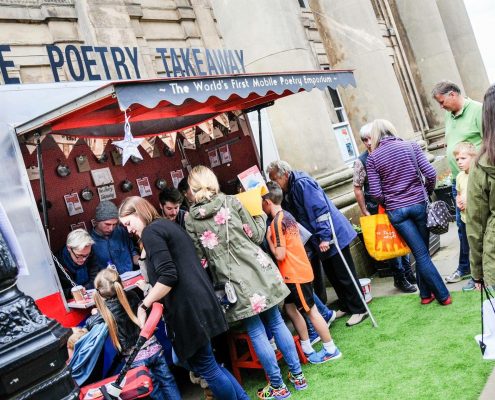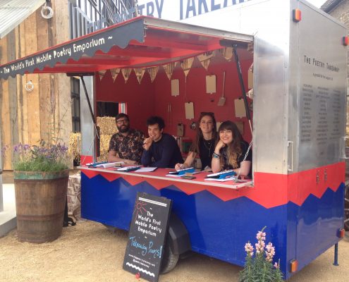 The Poetry Takeaway is the Worlds’ first mobile Poetry Emporium, serving high quality, personalised Poetry to our diners, written, performed and wrapped up to Takeaway.